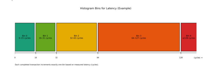 In Histogram based implementation , each completed transaction increments exactly one latency bin (based on measured cycles). Ranges are configurable (linear or exponential), and the counters are monotonically increasing.