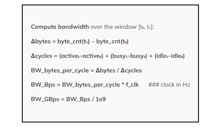 - a.Throughput: Δbytes/Δcycles * f_clk